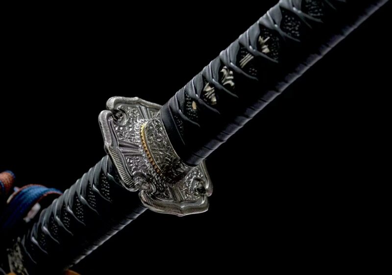 Le katana Shiroi est doté d’une lame mortelle bleue et d’un véritable hamon fait main. La première chose que l’on remarque quand on regarde ce katana c’est que son Tsuka-ITO en cuir PU se prolonge jusqu’au milieu de son saya.